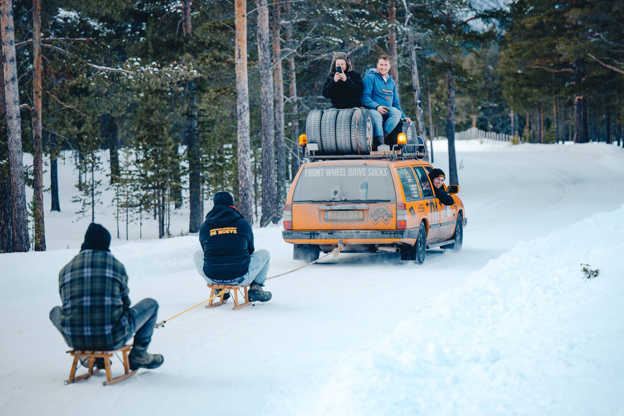 Nous partons un peu au sud de Göteborg et roulons pendant 5 jours jusqu’à Jokkmokk (située sur le cercle polaire), avant de redescendre vers le sud pour terminer le tour au lac Vänern. Bien sûr, cet itinéraire offre une garantie de neige et t’emmène dans des endroits dont tu ne soupçonnais même pas l’existence ! Le Carbage run est déjà passé une fois par le cercle polaire, mais cette fois-ci, nous avons trouvé de nouvelles routes exigeantes qui valent vraiment le détour. Après l’arrivée, tu peux rentrer chez toi en une journée, sans avoir à prendre de ferry.