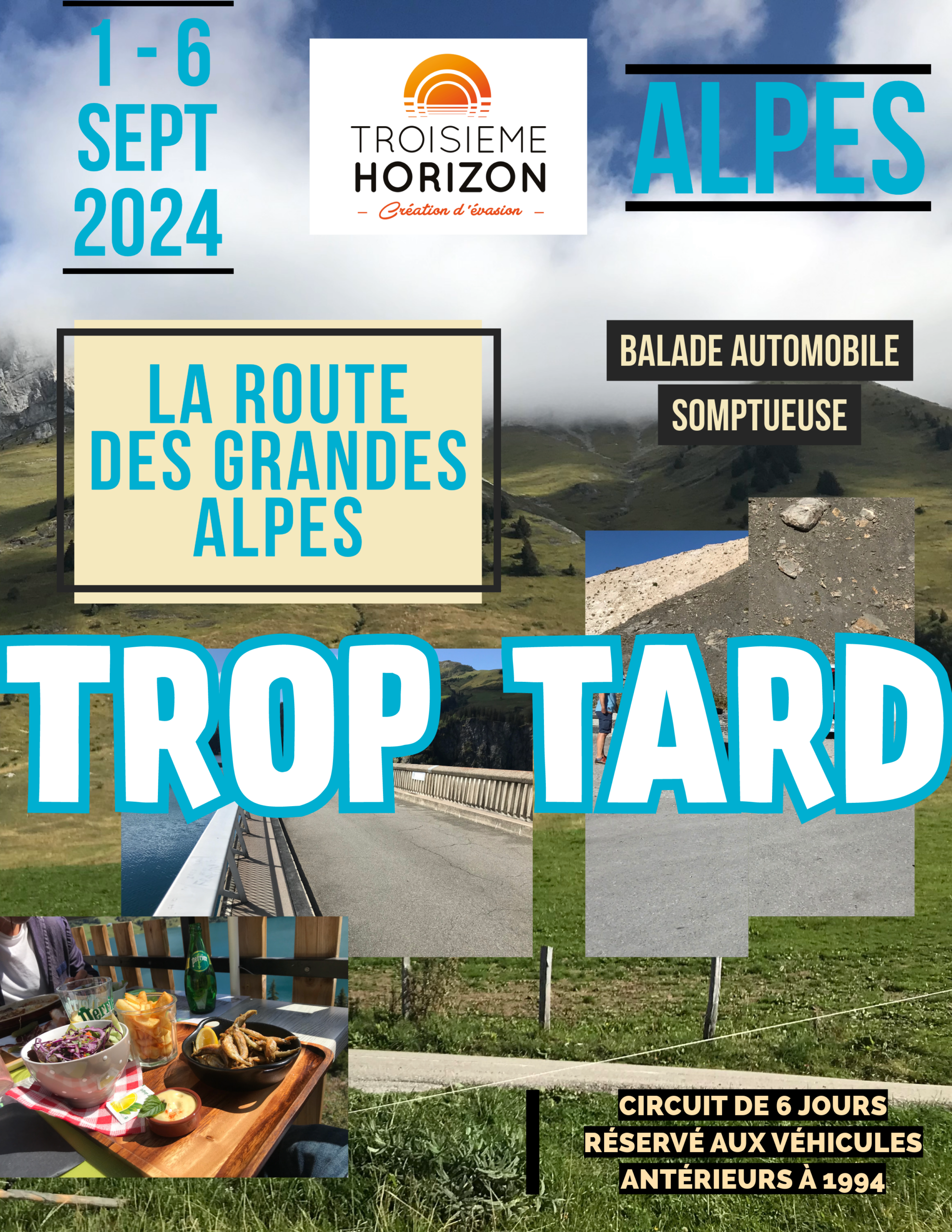 Troisième Horizon propose aux propriétaires de véhicules de collection (postérieurs à 1960 et antérieurs à 1994) de parcourir ce tracé légendaire qu’est La Route des Grandes Alpes, sans conteste l’une des plus belles routes d’Europe.
